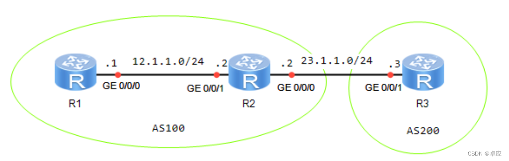 [R1]bgp 100 //启动BGP进程,进程号为100