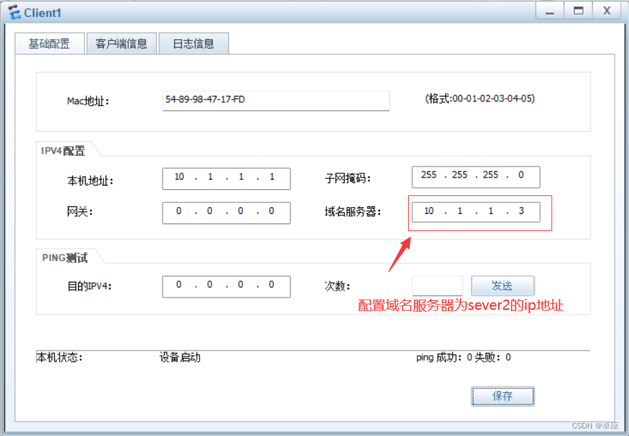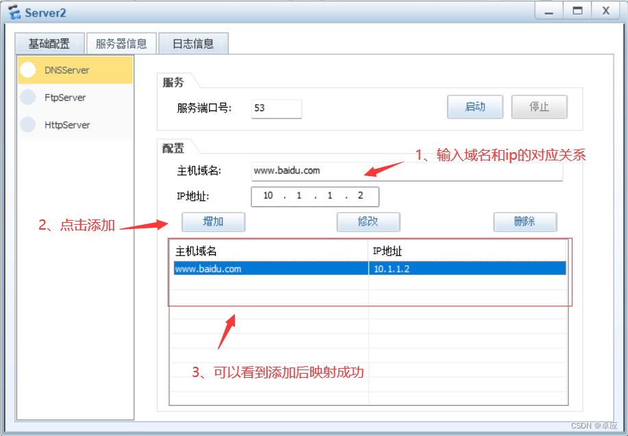 步骤3:在sever2上开启dns服务,并且配置对应的映射关系