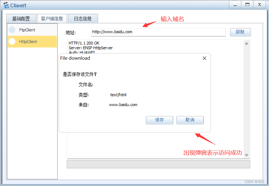 1、实验环境:如图所示,sever1开启http服务,sever2开启dns服务,现在需要在sever2上面配置对应的域名和ip地址映射,让client1能够访问www.baidu.com从而来对server1的http服务进行访问。