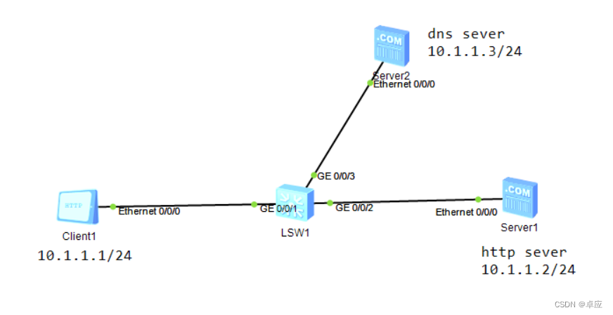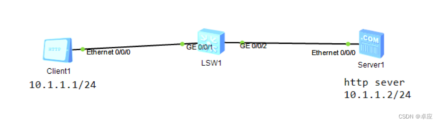 1、实验环境:如图所示,client1为客户端、sever1为http服务器,现在在sever1上开启http服务,client1能够访问sever1上的http服务。