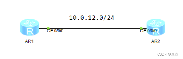 1、实验环境:如图,AR1作为FTP sever、AR2作为FTP client ,实现AR1与AR2之间的文件传输。