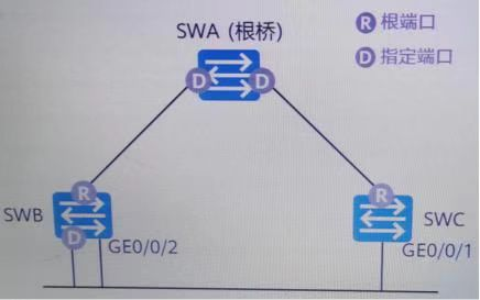 解析:该网络运行的是RSTP,因为跟端口根端口,是所在交换机上离根交换机最近的端口