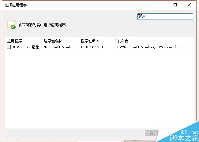 点击"使用安装的封装应用作为参考"后面的选择按钮,找到Windows聚焦并勾选,然后点击确定。