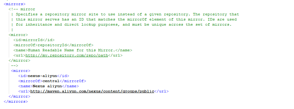 以上就是含糊麦片最近收集整理的关于maven本地仓库与阿里云镜像配置的全部内容,更多相关maven本地仓库与阿里云镜像配置内容请搜索靠谱客的其他文章。