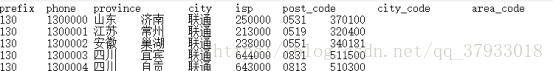 private String prefix ; private String phone ; private String province ; private String city ; private String isp ; private String postCode ; private String cityCode ; private String areaCode ; |