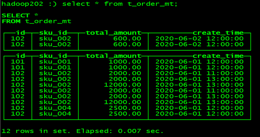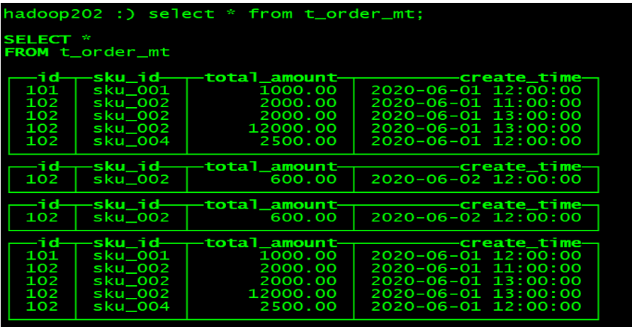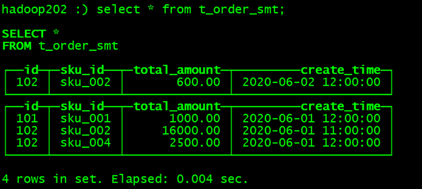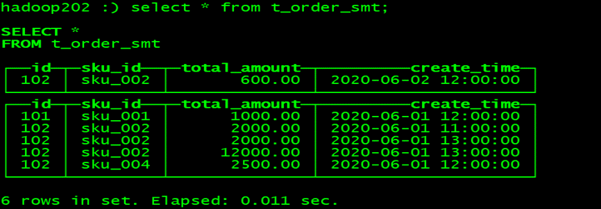 hadoop102 :) select * from t_order_smt;