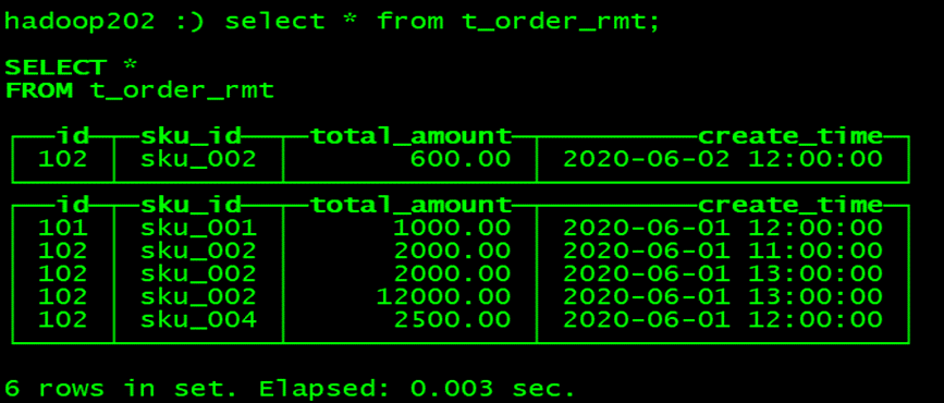 hadoop102 :) select * from t_order_rmt;
