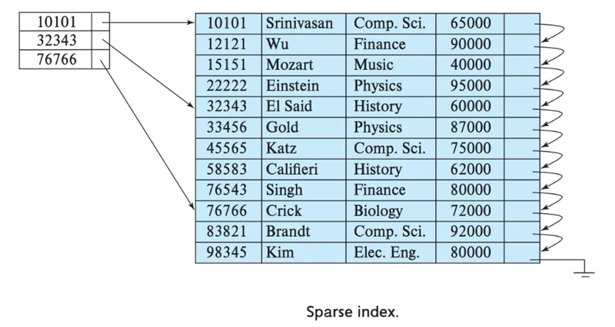 稀疏索引: