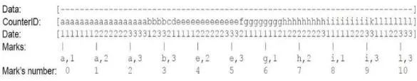 CounterID是第一索引列,可以直接定位到CounterId=’a’的数据是在[0,3]数据块中。