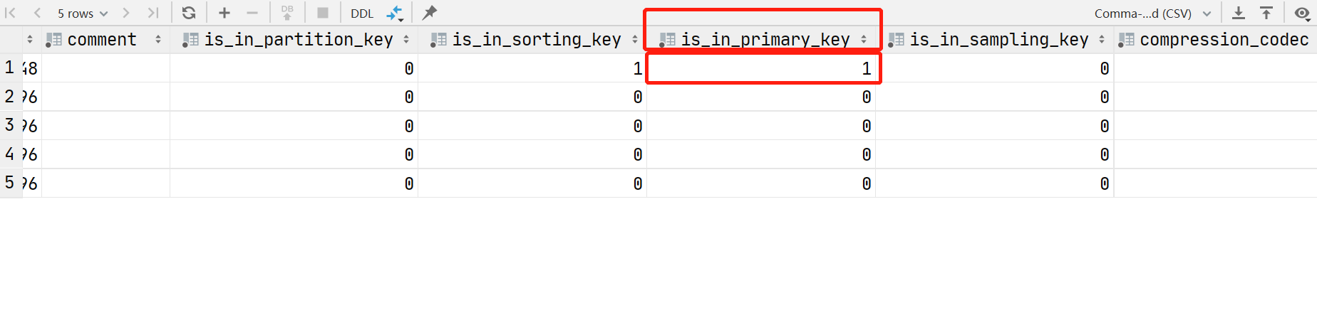 最近需求是需要获取到ClickHouse的主键字段,上网找了一圈就是没找到相关答案,根据表结构获取的不太现实,思前想后,于是决定考虑从表字段入手,果然发现了不一样的地方: