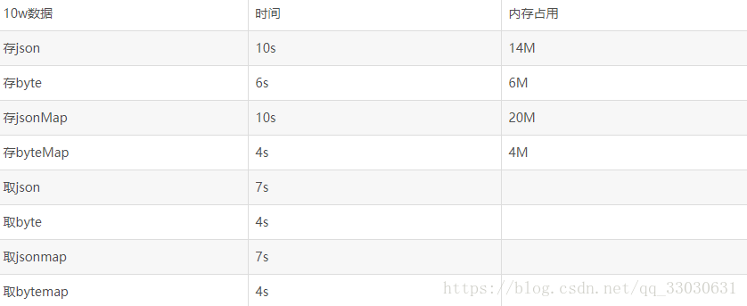 测试十万数据存储String Byte的耗时与内存占用的对比数据