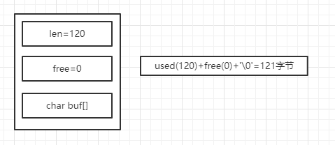 2.修改后如果已有free空间不够且数据小于1M,每次预分配一倍容量。如原有len=60byte,free = 0 ,再追加60byte,预分配120byte ,