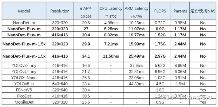 NanoDet-Plus与其他轻量级检测模型性能对比