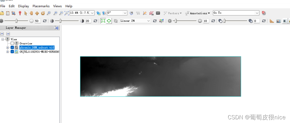 2. 打开 DEM 数据“...数据QuickBirdphoenix_DEM_subset.tif”。