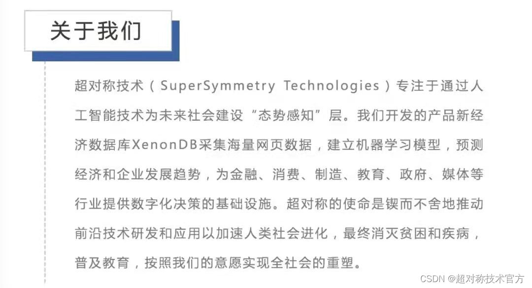 超对称团队面向金融和非金融行业的开发者开放11项API能力,建设BBT大模型开发者生态。第一批开放的API能力包括:金融知识图谱,文章摘要,社交媒体情绪识别,新闻情绪识别,新闻分类标签,命名实体识别,关系抽取,事件抽取,事件因果抽取,公告抽取,负面消息和主体识别。