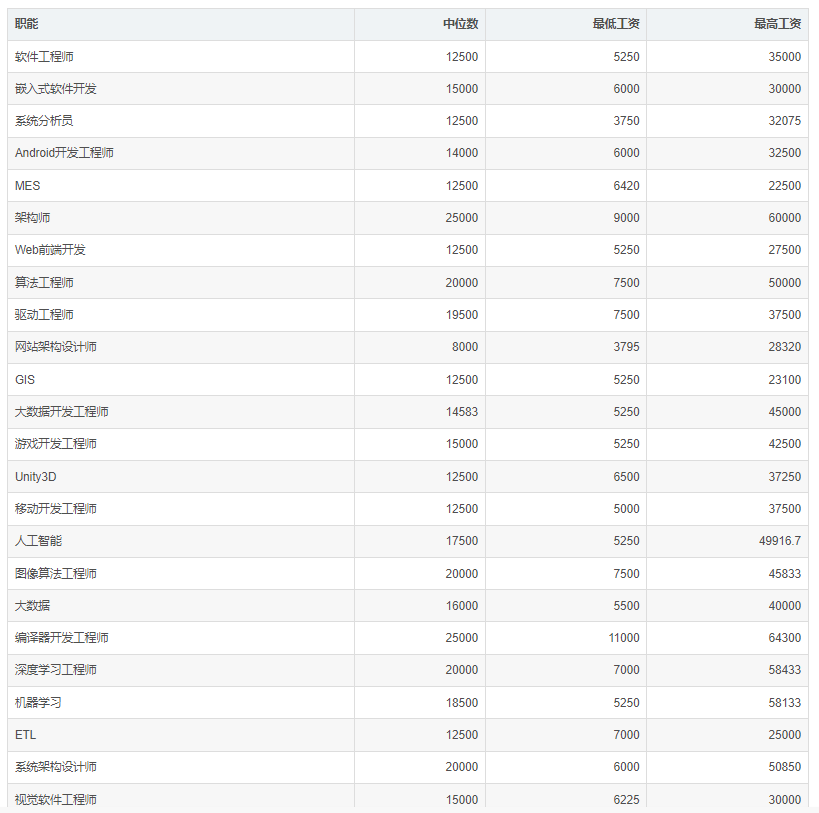2021年6月全国招收程序员435501人。2021年6月全国程序员平均工资15052元,工资中位数13000元,其中96%的人的工资介于1750元到150000元。