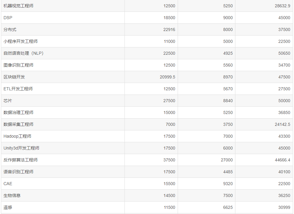 通过不同岗位程序员工资数据,我们发现,人工智能相关岗位,比如算法工程师、反作弊算法工程师,薪资相对更高。