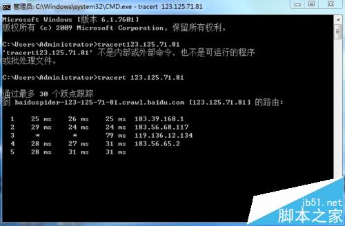 以上就是高高曲奇最近收集整理的关于怎么查询ip是否为百度蜘蛛ip? tracert指令的使用方法的全部内容,更多相关怎么查询ip是否为百度蜘蛛ip?内容请搜索靠谱客的其他文章。