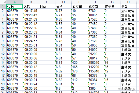 1.通过某某网接口获取股票的实时成交数据(基本和同花顺中成交明细同步);