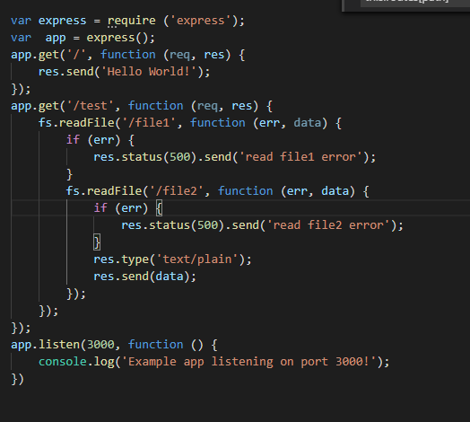 Express的api很简单 但是是基于ES5的语法 想要异步实现代码 只有一个方法: 回调