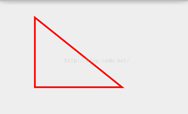 @Override protected void onDraw(Canvas canvas) { super.onDraw(canvas); mPaint.setColor(Color.RED); mPaint.setStrokeWidth(10); mPaint.setStyle(Paint.Style.STROKE); Path path = new Path(); path.moveTo(100,100); path.lineTo(100,500); path.lineTo(600,500); path.close(); canvas.drawPath(path,mPaint); }moveTo()方法是绘制多边形的起点,lineTo()是连接上一个点,构成一条线,path的close()方法一定要记得调用,close()能保证多边形构成的线能闭合,