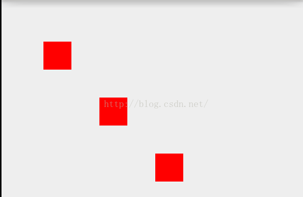 @Override protected void onDraw(Canvas canvas) { super.onDraw(canvas); mPaint.setColor(Color.RED); mPaint.setStrokeWidth(100); float[] pts = {100,200,300,400,500,600}; canvas.drawPoints(pts,mPaint); }这代表绘制3个点(100,200),(300,400),(500,600)效果如下: