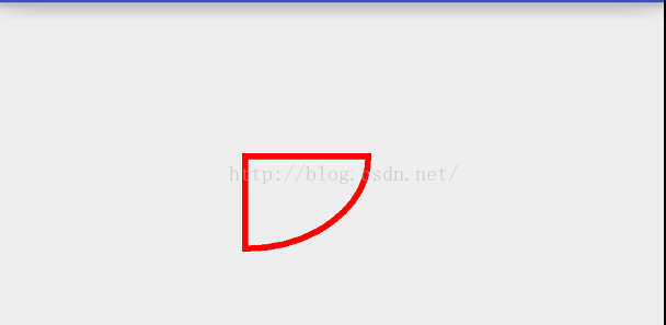 @Override protected void onDraw(Canvas canvas) { super.onDraw(canvas); mPaint.setColor(Color.RED); mPaint.setStrokeWidth(10); mPaint.setStyle(Paint.Style.STROKE); RectF rect = new RectF(100,100,500,400); canvas.drawArc(rect,0,90,true,mPaint); }效果: