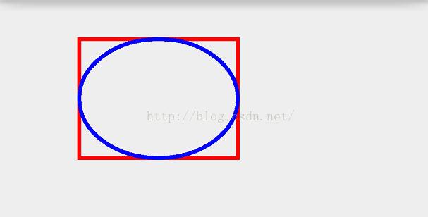 @Override protected void onDraw(Canvas canvas) { super.onDraw(canvas); mPaint.setColor(Color.RED); mPaint.setStrokeWidth(10); mPaint.setStyle(Paint.Style.STROKE); RectF rect = new RectF(100,100,500,400); canvas.drawRect(rect,mPaint); mPaint.setColor(Color.BLUE); canvas.drawOval(rect,mPaint); }效果: