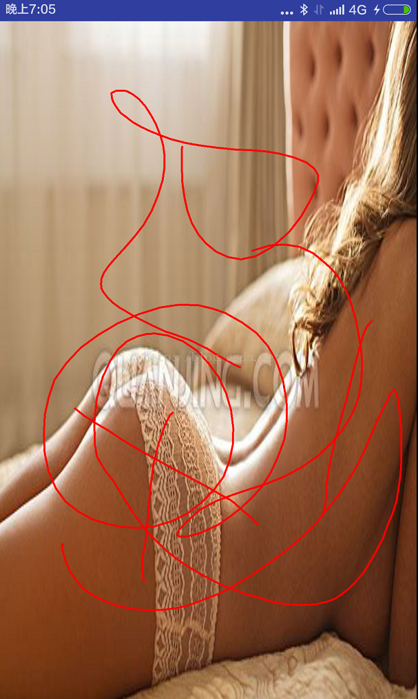 package com.example.canvasdemo; import android.content.Context; import android.graphics.Canvas; import android.graphics.Color; import android.graphics.Paint; import android.graphics.Path; import android.util.AttributeSet; import android.view.MotionEvent; import android.view.View; /** * Created by admin on 2016/5/18. */ public class TestCanvasView extends View { private Paint mPaint; private Path mPath; public TestCanvasView(Context context) { this(context,null); } public TestCanvasView(Context context, AttributeSet attrs) { this(context, attrs,0); } public TestCanvasView(Context context, AttributeSet attrs, int defStyleAttr) { super(context, attrs, defStyleAttr); mPaint = new Paint(); mPath = new Path(); } @Override protected void onDraw(Canvas canvas) { super.onDraw(canvas); mPaint.setColor(Color.RED); mPaint.setStrokeWidth(5); mPaint.setTextSize(60); mPaint.setStyle(Paint.Style.STROKE); canvas.drawPath(mPath,mPaint); } @Override public boolean onTouchEvent(MotionEvent event) { switch (event.getAction()){ case MotionEvent.ACTION_DOWN: mPath.moveTo(event.getX(),event.getY()); return true; case MotionEvent.ACTION_MOVE: mPath.lineTo(event.getX(),event.getY()); invalidate(); break; case MotionEvent.ACTION_UP: break; } return super.onTouchEvent(event); } }效果: