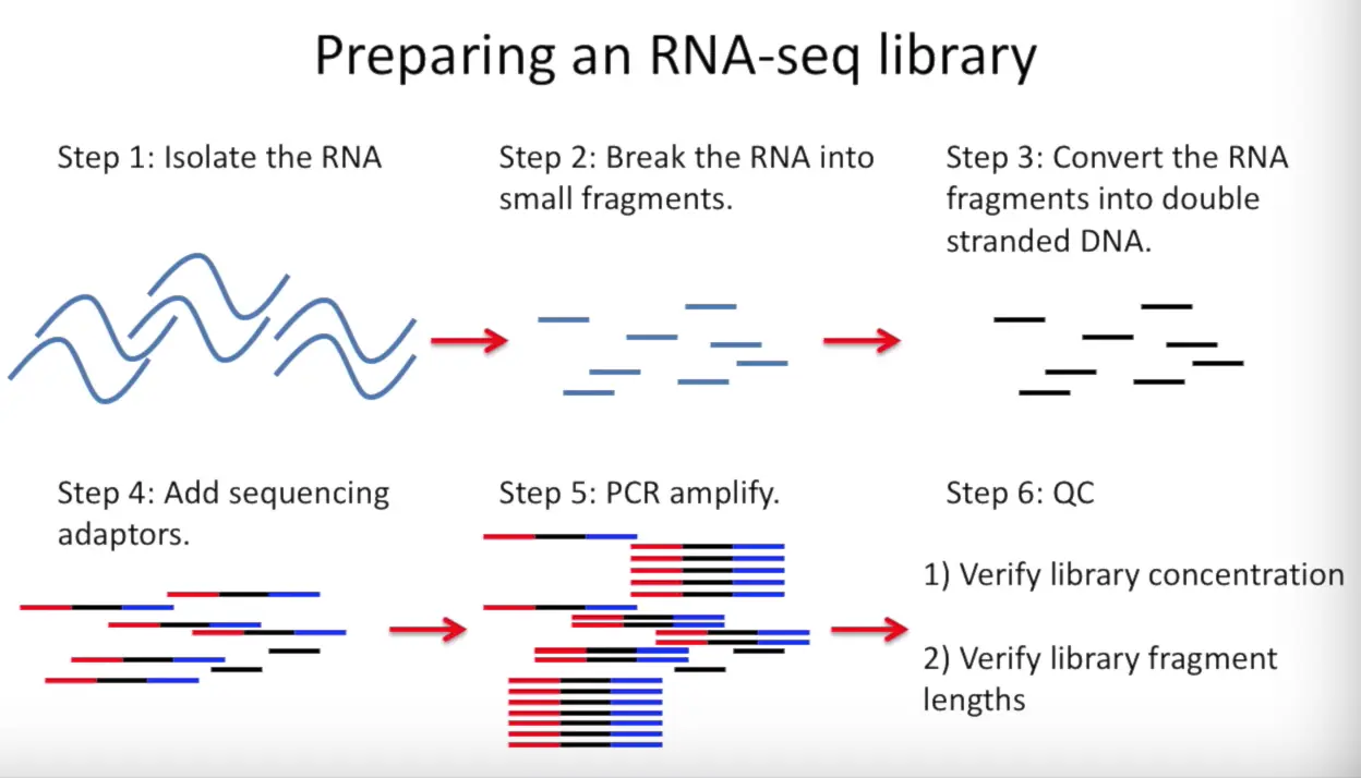 分离RNA=》将RNA打断成小片段=〉将小RNA片段反转录成DNA=》加接头