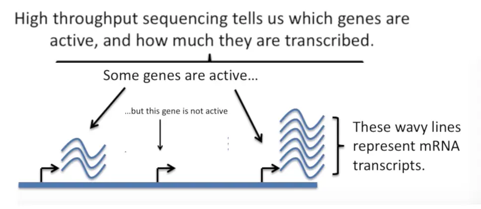 我们知道,每个细胞都由一堆染色体组成,每个染色体由一堆基因组成,当然并不是所有的基因都是活跃的,只有一部分基因是可以表达,而表达的中间过程就要经历mRNA转录本,通过高通量测序,我们就能得知:哪些基因是活跃可以表达的,并且产生了多少转录本(也就是衡量基因表达量的指标)