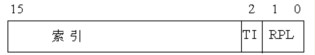 保护模式下的段寄存器存储的是段选择子!这时候选择子相当于数组中的索引,那么怎么用这13位索引获取段基址呢?段寄存器16位每个位域代表意思具体结构如下: