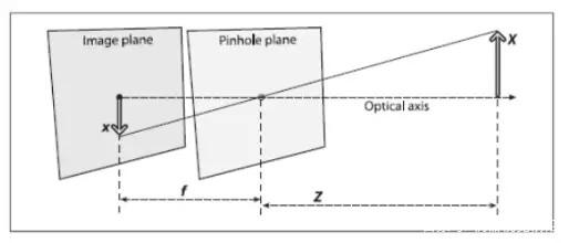 说起这个,就不得不提到针孔模型。如图3所示,针孔模型是凸透镜成像的一种简化模型。当物距足够远时(远大于两倍焦距),凸透镜成像可以看作是在焦距处的小孔成像。(ref: http://bak1.beareyes.com.cn/2/lib/200110/04/20011004006.htm)