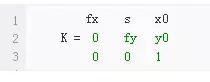 其中,fx,fy为焦距,一般情况下,二者相等,x0、y0为主点坐标(相对于成像平面),s为坐标轴倾斜参数,理想情况下为0