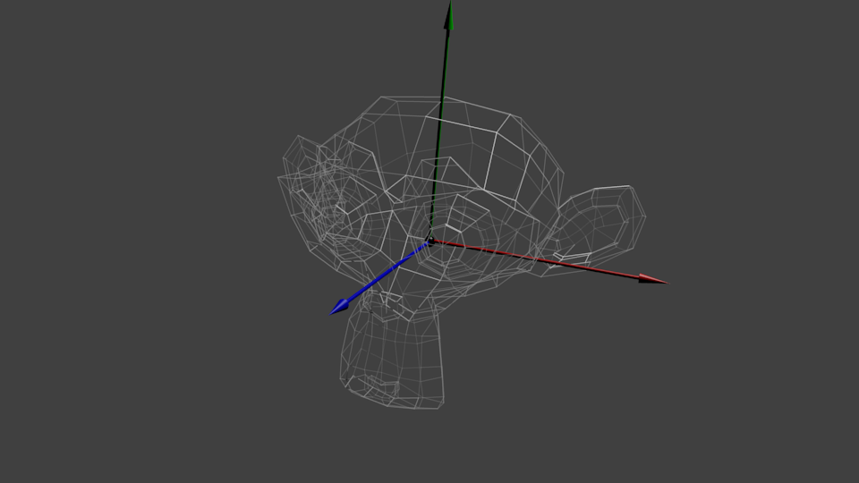 这个三维模型和可爱的红色三角形一样,由一组顶点定义。顶点的XYZ坐标是相对于物体中心定义的:也就是说,若某顶点位于(0,0,0),则其位于物体的中心。