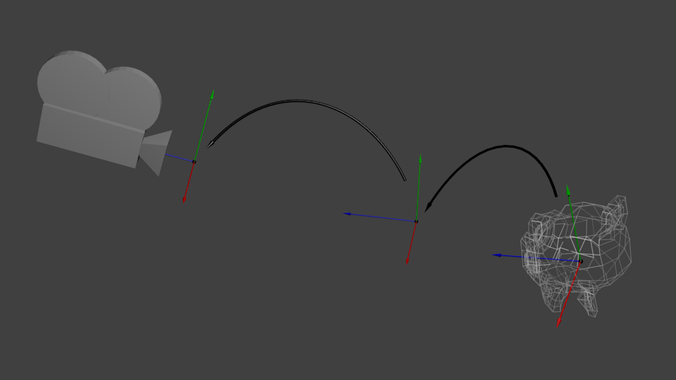从世界空间(顶点都相对于世界空间中心定义)到摄像机空间(Camera Space,顶点都相对于摄像机定义)的变换过程。