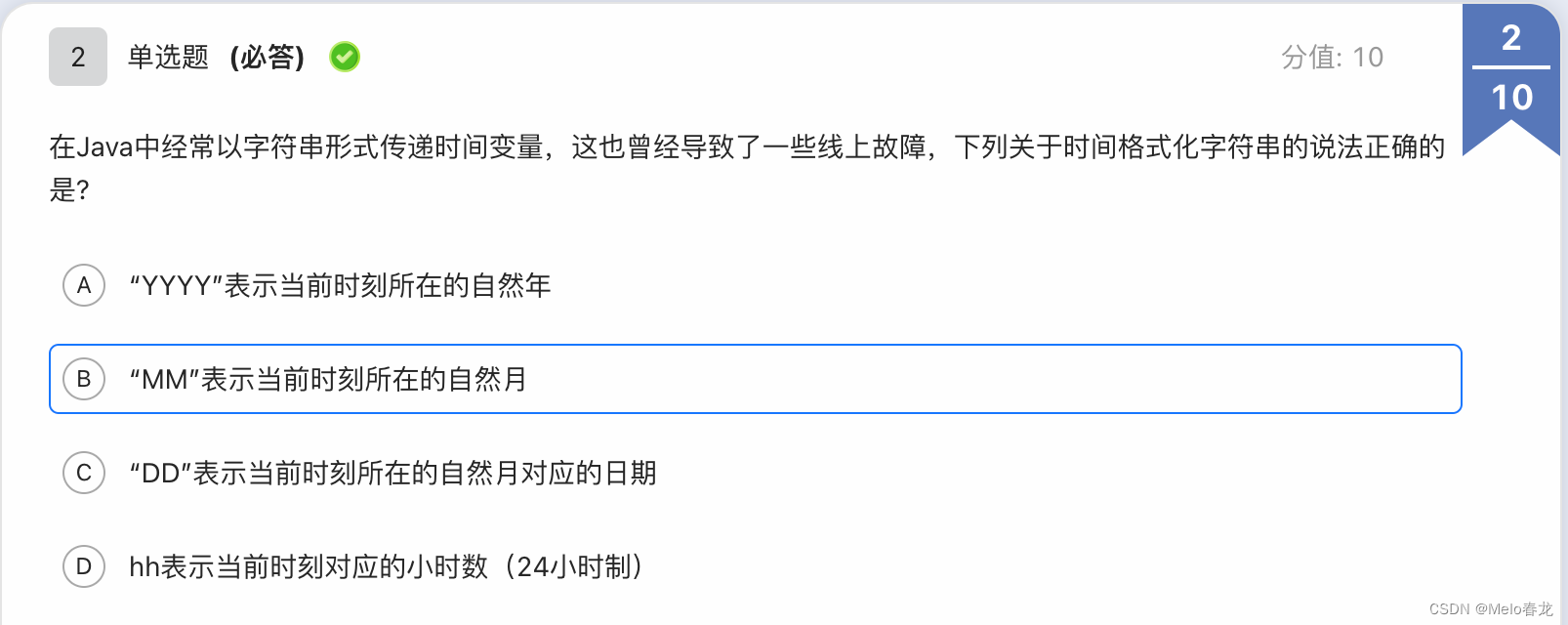 “hh”用于表示当前时刻对应的小时数,但是以12小时制表示,若需要使用24小时制表示,应当使用“HH”。