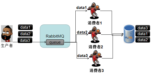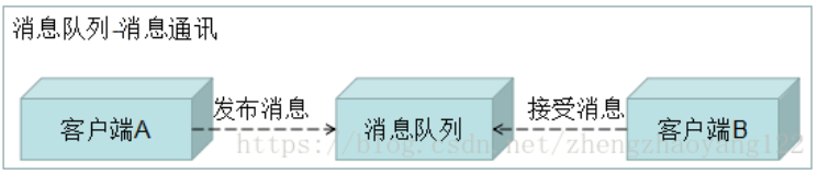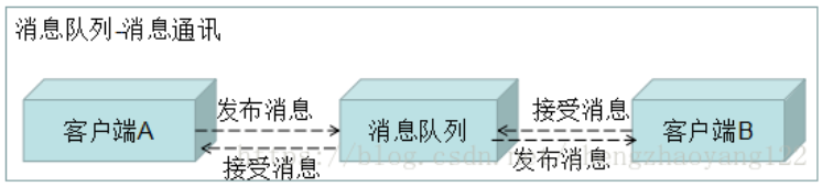 ①、点对点通讯:客户端A和客户端B使用同一队列,进行消息通讯。
