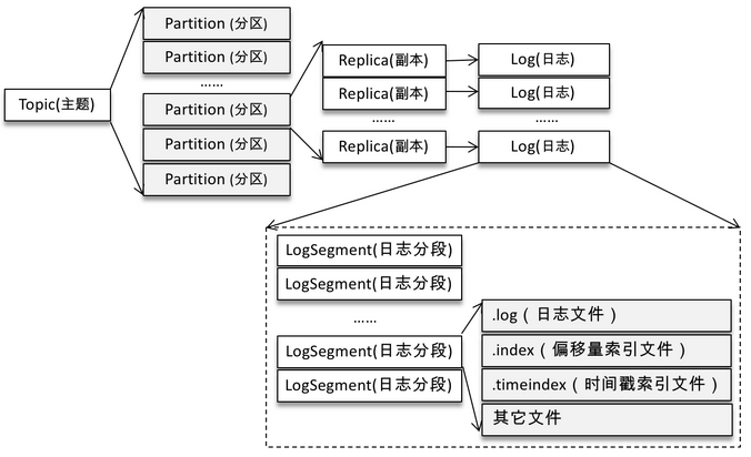 Kafka 中的消息是以主题为基本单位进行归类的,各个主题在逻辑上相互独立。每个主题又可以分为一个或多个分区。不考虑多副本的情况,一个分区对应一个日志(Log)。为了防止 Log 过大,Kafka 又引入了日志分段(LogSegment)的概念,将 Log 切分为多个 LogSegment,相当于一个巨型文件被平均分配为多个相对较小的文件。