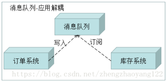 【2】应用解耦:场景说明:用户下单后,订单系统需要通知库存系统。如下图: