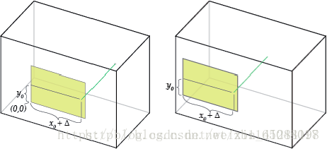 主点偏移就是主点位置相对于图像平面(投影面)的位置。上图中,增加x0的值相当于把针孔向右移动,等价将投影面向左移动同时保持针孔位置不变。