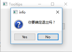 def closeEvent(self,event): res=QtGui.QMessageBox.question(self,'info', "你要确定退出吗?",QtGui.QMessageBox.Yes | QtGui.QMessageBox.No, QtGui.QMessageBox.No) if res==QtGui.QMessageBox.Yes: event.accept() else: event.ignore()