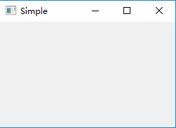 1 import sys 2 from PyQt5.QtWidgets import QApplication, QWidget 3 4 def main(): 5 app=QApplication(sys.argv) 6 w=QWidget() 7 w.resize(250,150) 8 w.move(300,300) 9 w.setWindowTitle('Simple') 10 w.show() 11 sys.exit(app.exec_()) 12 13 if __name__=='__main__': 14 main()