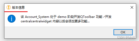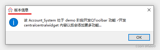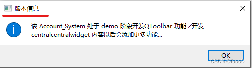 那如果想让QMessageBox信息框拥有独立的图标,就只要遵循parent:Qwidget就行了,通俗点说就是创建一个窗口就行,让信息框在显示的时候借助新建的一个窗口来实现独立图标