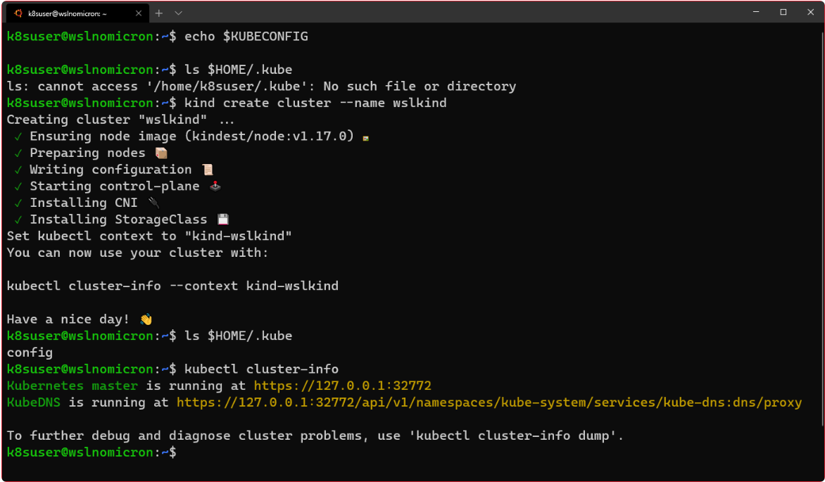 kind create cluster --name wslkind