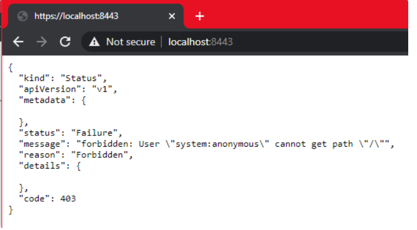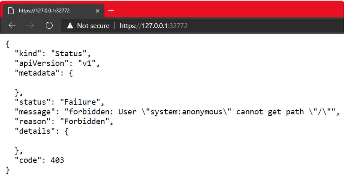 Minikube与WSL2集成的真正优势在于,端口8443一旦在WSL2上打开,便会实际上将其转发至Windows,因此无需记住IP地址,我们可以通过localhost方式访问Kubernetes master的URL :