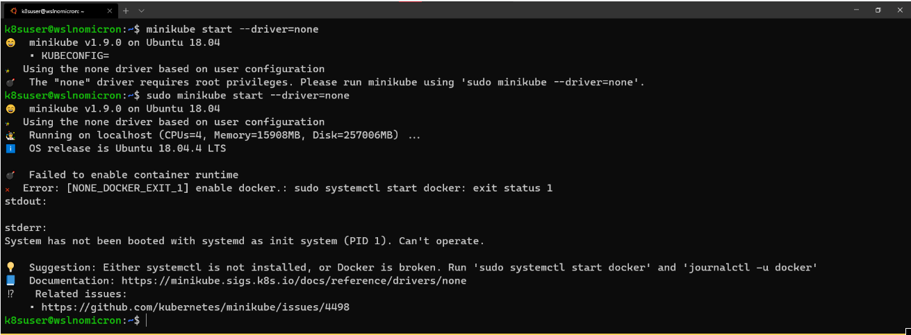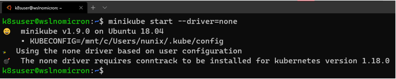 最后,退出并启动新minikube的会话。不需要停止WSL2,一个新的会话就足够了: