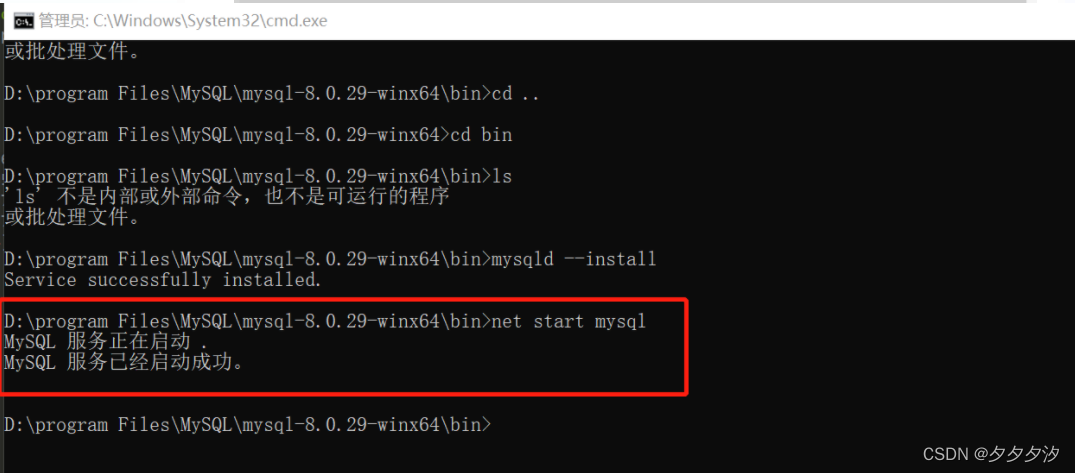 5.启动MySQL(这个图是偷来的,因为我的MySQL在别的文件夹下,已经启动过了)