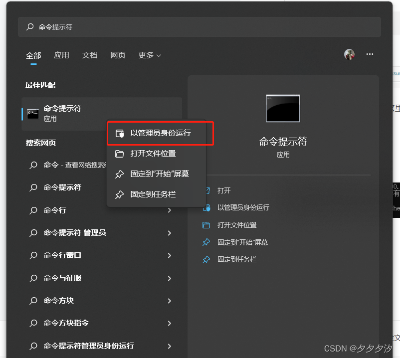 tips:菜单搜索(命令提示符)——右键——以管理员身份运行