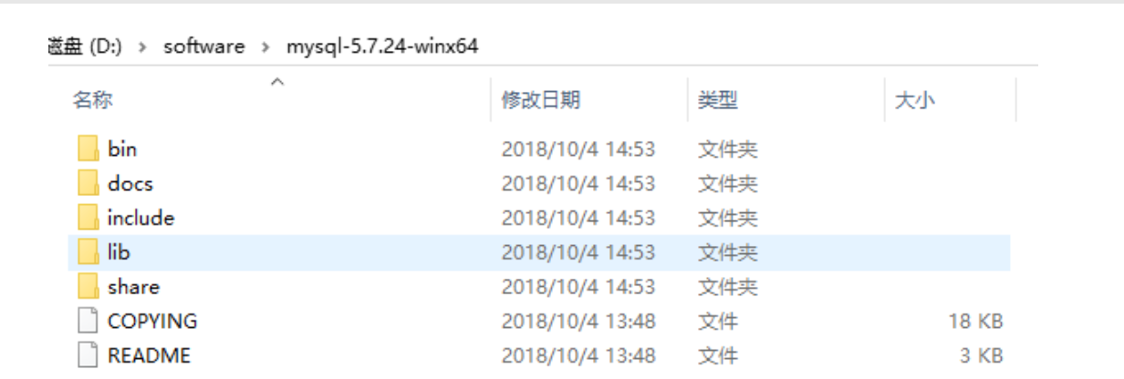 1.下载完成后我们得到的是一个压缩包,将其解压,我们就可以得到MySQL 5.7.24的软件本体了(就是一个文件夹),我们可以把它放在你想安装的位置。